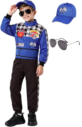 SIZGAROOT Kids Race Car Driver Costume Toddler Boys Race Car Driver Halloween Costume (Blue, 5-6 Years)