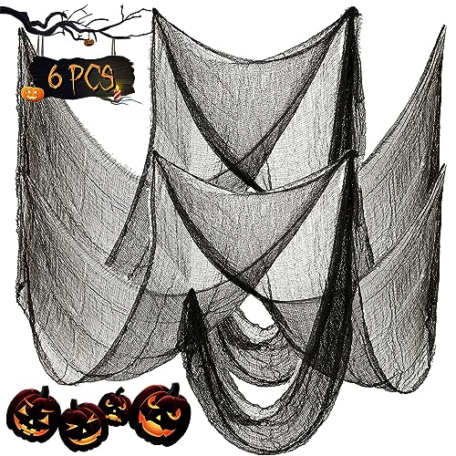 6 Pcs Halloween Decorations Creepy Cloth Indoor Outdoor, Scary Gauze Halloween Party Decoration, Spooky Home Decor Supplies for Table Tree Garden Doorways Haunted House Yard Skeleton (Black, 30″x72″)